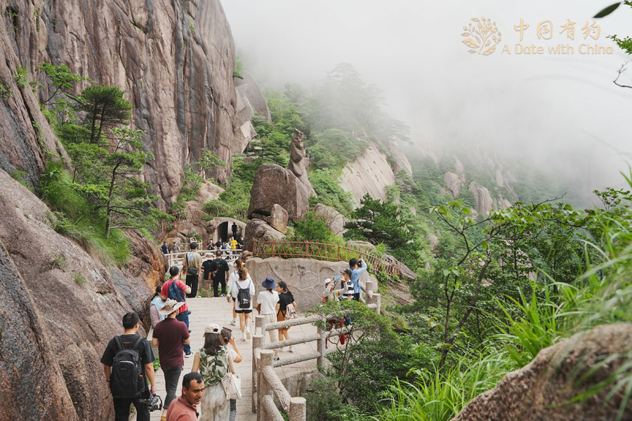 Visitors appreciate Huangshan Mountain in East China's Anhui province in this photo taken on July 1, 2022. [Photo/chinadaily.com.cn]