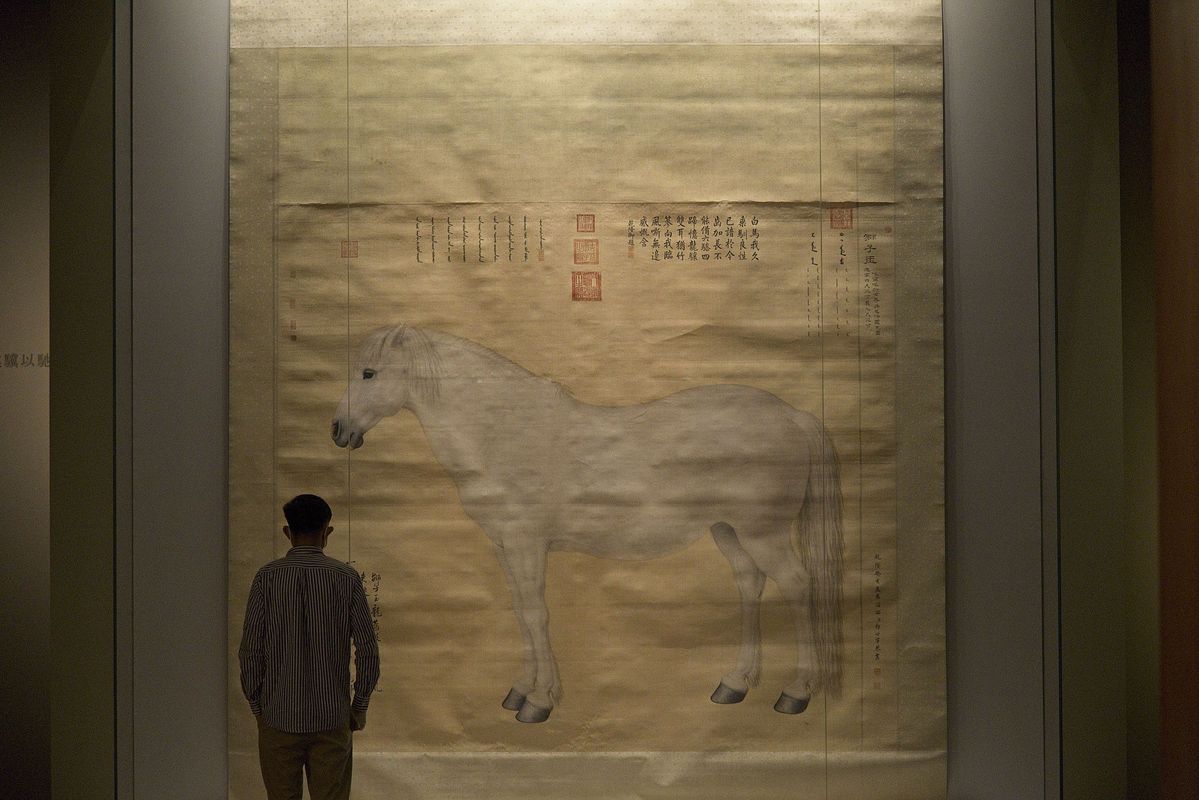 A visitor admires an ancient painting of a horse. [Photo/VCG]