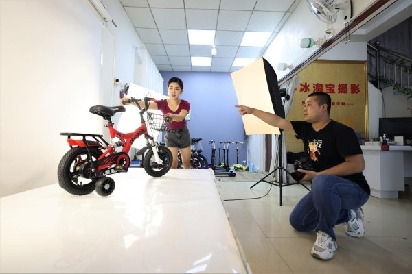 A new bicycle is photographed at an e-commerce service center in Pingxiang county of Xingtai, Hebei province. [Photo provided to chinadaily.com.cn]