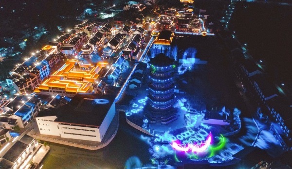 A night view of Chishuiwan ancient town in Shexian county, Hebei province on May 30. [Photo/Xinhua]