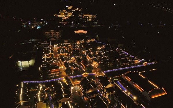 A night view of Chishuiwan ancient town in Shexian county, Hebei province on May 30. [Photo/Xinhua]