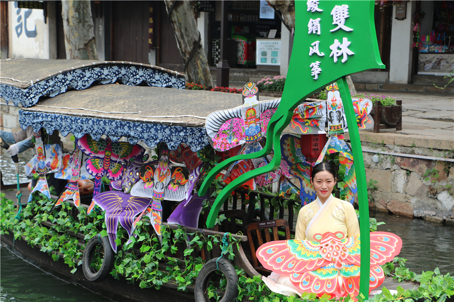 A photo taken on June 21, 2022, shows the 2nd Zhejiang Grand Canal World Cultural Heritage Week in Huzhou, East China's Zhejiang province. A staff member dresses in costume to show the folk customs of this ancient town. [Photo/IC]