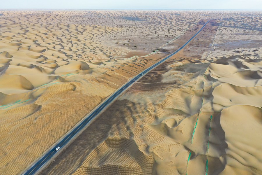 There are other travel options available for those who like taking road trips, so they can enjoy the scenic views along the way. Last month, the Hotan-Ruoqiang Railway was officially put into operation, marking the inauguration of the world's first desert rail loop line. The third highway traversing the Taklimakan Desert opened to traffic last week.