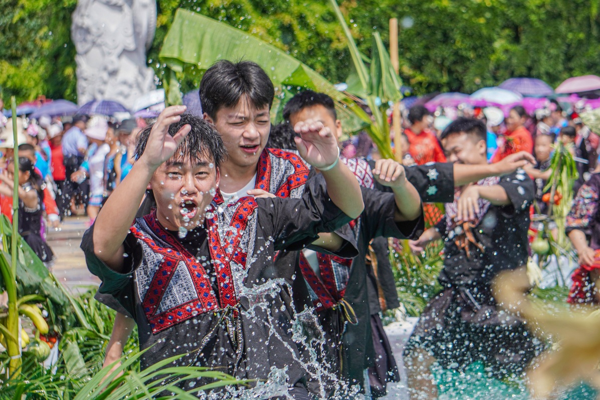 Miao people from Qiandongnan Miao and Dong autonomous prefecture of Guizhou province, gather in Jianhe county to enjoy the Water Dragon Carnival. [Photo by Ouyang Zhangjie/Provided to chinadaily.com.cn]