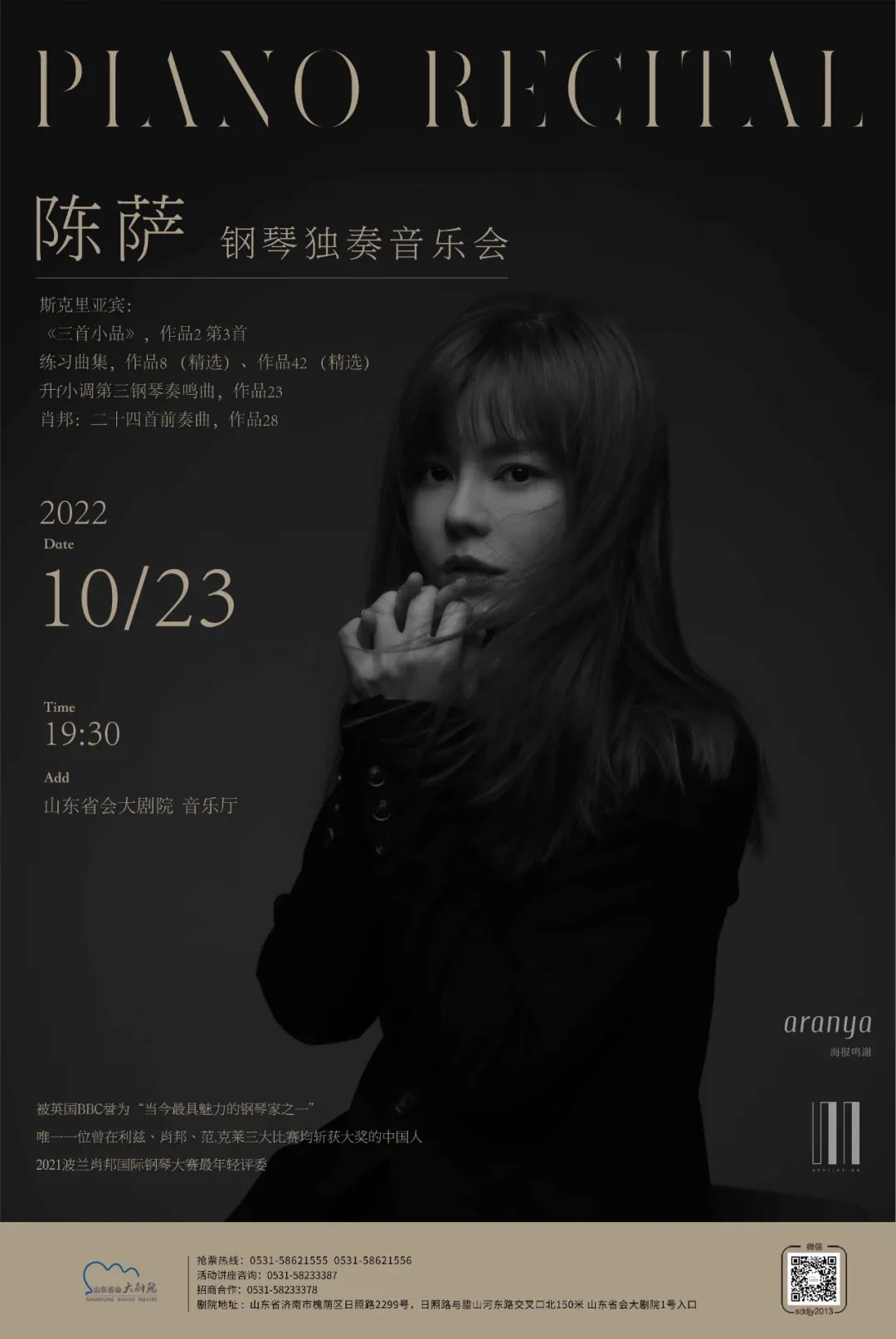 For piano lovers! Chen Sa will have a recital at Shandong Grand Theater on Oct 23. The audience will be treated to works of Scriabin and Chopin. Stay tuned for more!