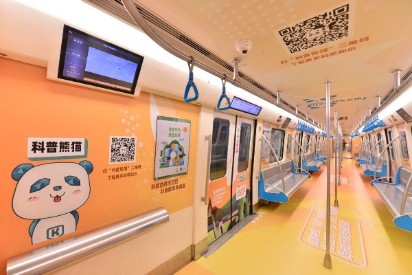 Knowledge of carbon emissions can be seen in the cabins of a panda-themed subway line in Chengdu, Sichuan province on June 27, 2022. [Photo/IC]