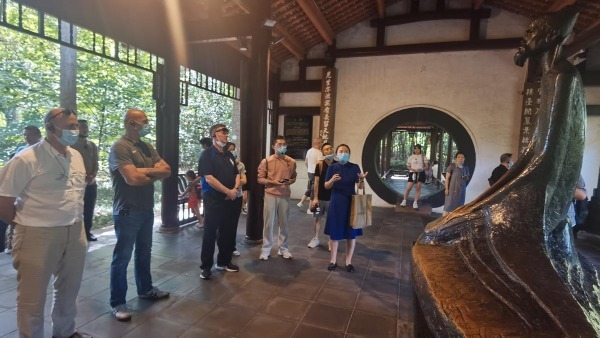 Chengdu-based foreign executives visit the Du Fu Thatched Cottage Museum in Chengdu, Sichuan province, last Monday. [Photo by Yue Ran/For chinadaily.com.cn]