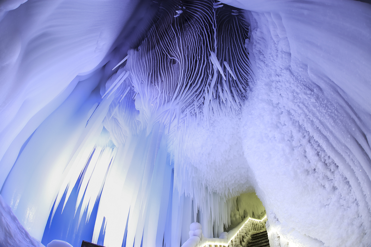 The cave has been developed into three levels with various shapes in the ice, such as icicles, icefalls and ice stalagmites.