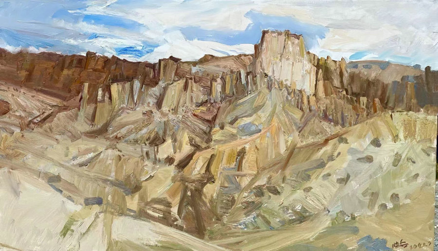 Fan Di'an, president of China Artists Association and chief curator of the exhibition, says the endeavor of introducing the xieyi style in oil painting has encouraged more painters to explore the forms and the soul of Chinese art traditions, and it has pushed them further into the brace of great nature and the realities of life to express in their work the majesty of the country.