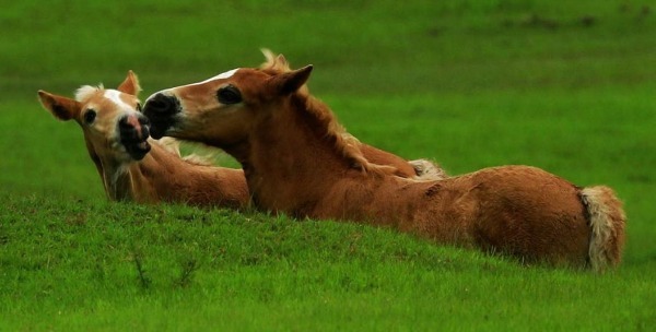 Togetherness: A couple of foals nuzzle each other tenderly. [Photo by Jiang Xiwu/For chinadaily.com.cn]