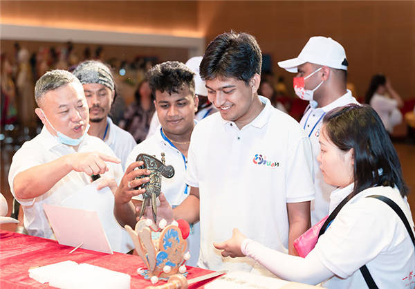 Foreign students learn about the crafting technique for Sichuan giant puppets. [Photo provided to chinadaily.com.cn]