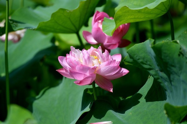 Lotus flowers grow in the lake over a total area of about 50,000 square meters. People can appreciate lake views by taking ferries for about 30 minutes or strolling down winding paths between the ponds.