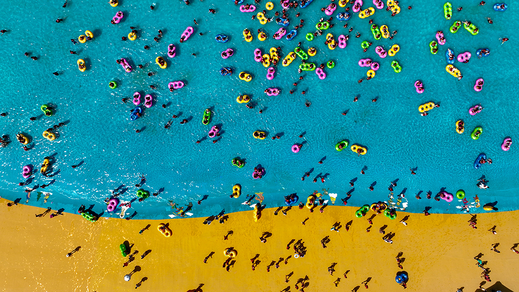 A water park in the Bosten Lake scenic area in Bagrax county, Northwest China’s Xinjiang Uygur autonomous region draws many tourists in summer. [Photos/IC]