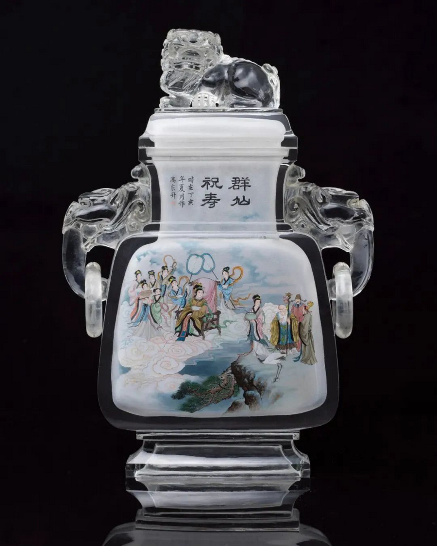 Featured techniques on display include jade carving and neihua — drawing on the inner of a transparent bottle, normally to store snuff tobacco in the past, so that people can appreciate the painting from outside.