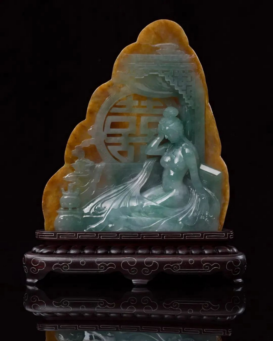 A jade carving piece by Wang Xiwei on show. [Photo provided to China Daily]