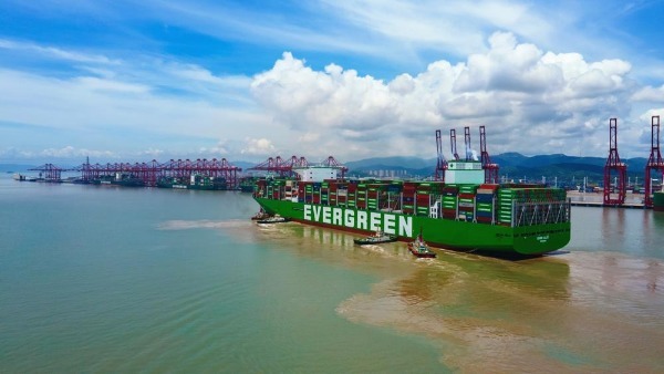 The new super ship, designed and built in China and owned by Evergreen Marine Corp, overtook Ever Ace as the world's largest container vessel when it was launched in late June.