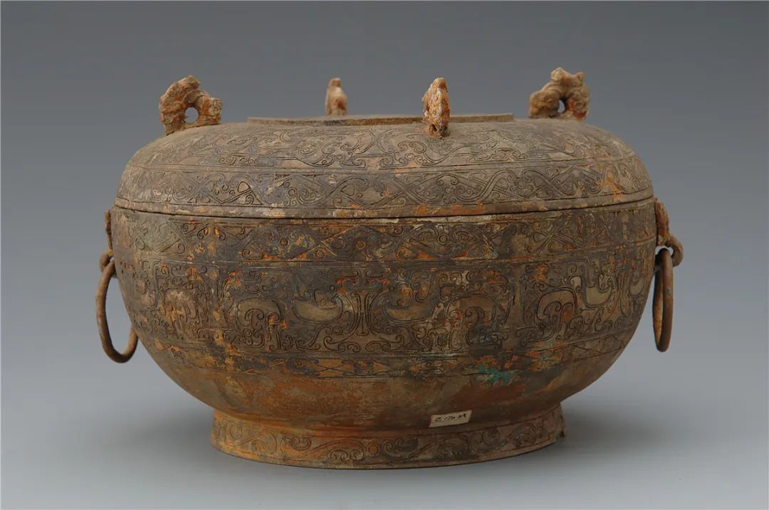 Bronze container with inlaid silver dragon and phoenix patterns, unearthed in 1985, permanent collection of the Changsha Museum [Photo/Official WeChat account of the Changsha Museum]