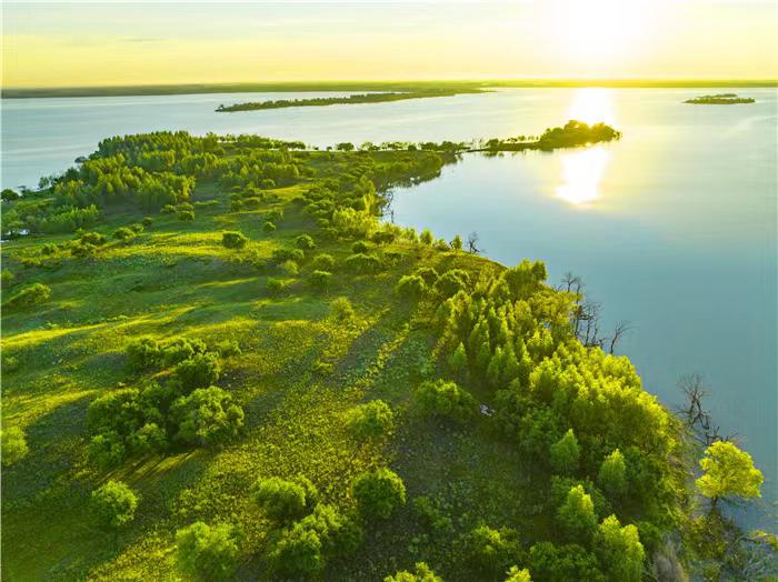 A series of aerial photos showed Mongolian elms, sparkling waters, windblown reeds and flying birds in the reserve — picturesque summer scenes of natural harmony.