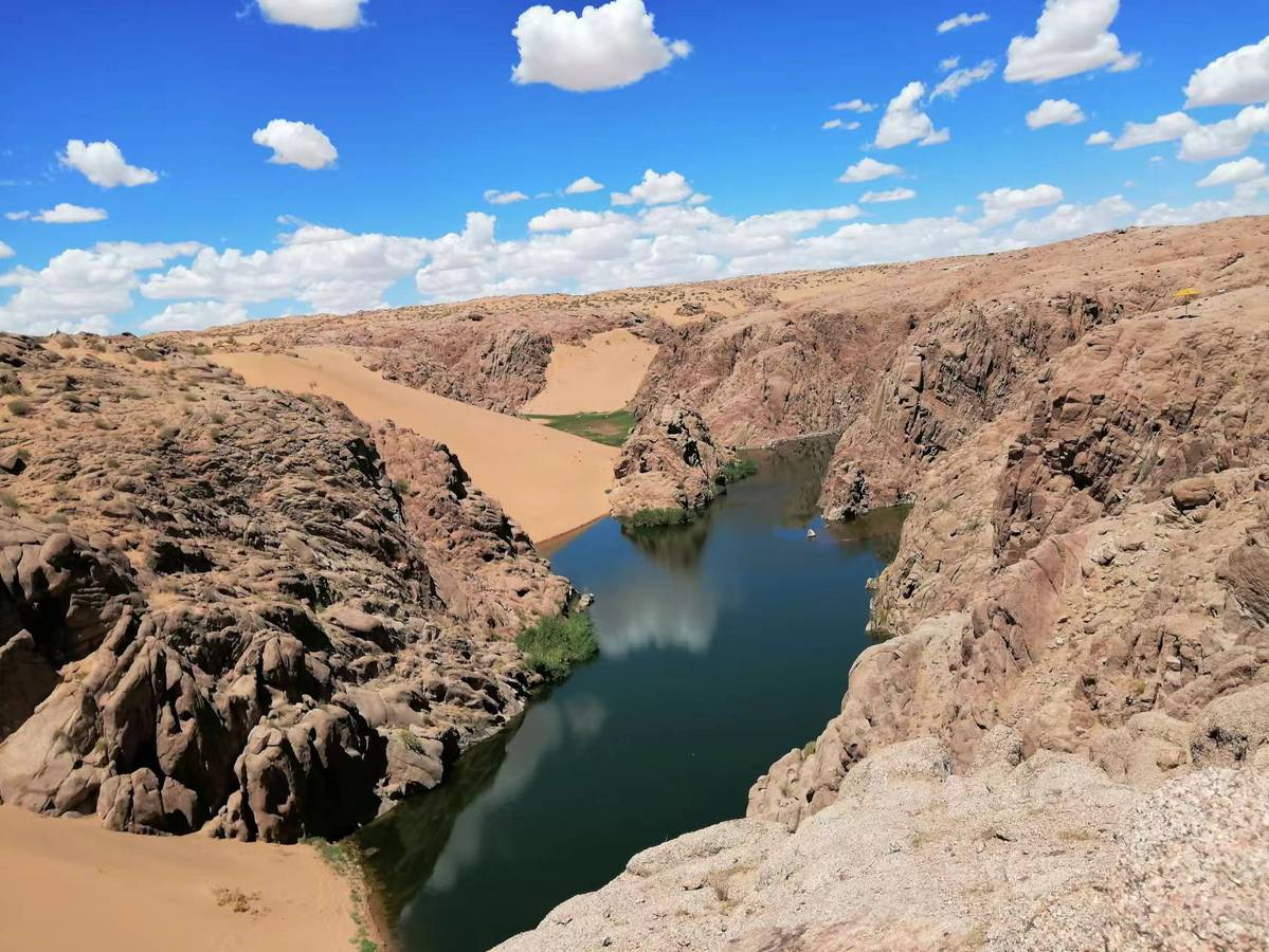 Lake surrounded by desert is rare sight