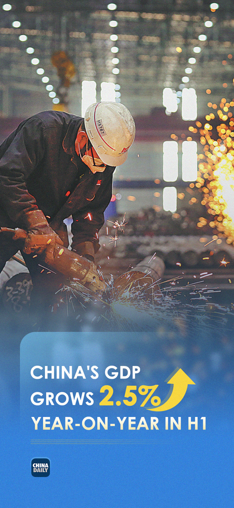 China's economy grew by 0.4 percent in the second quarter of 2022 compared with a year earlier to post a 2.5 percent growth in the first half of the year, the National Bureau of Statistics said on Friday.