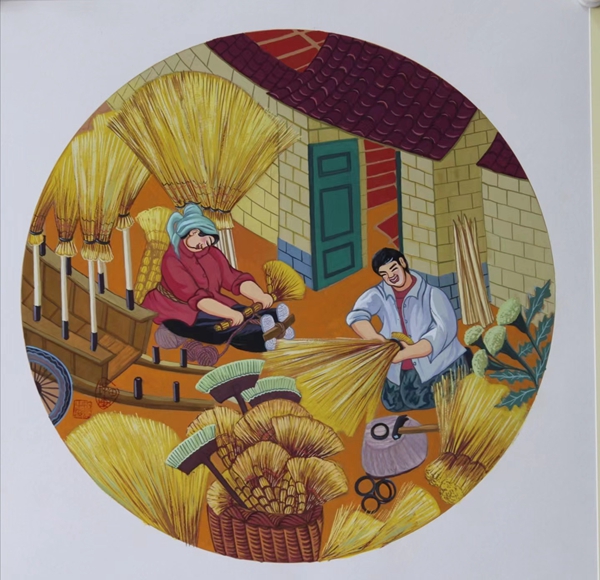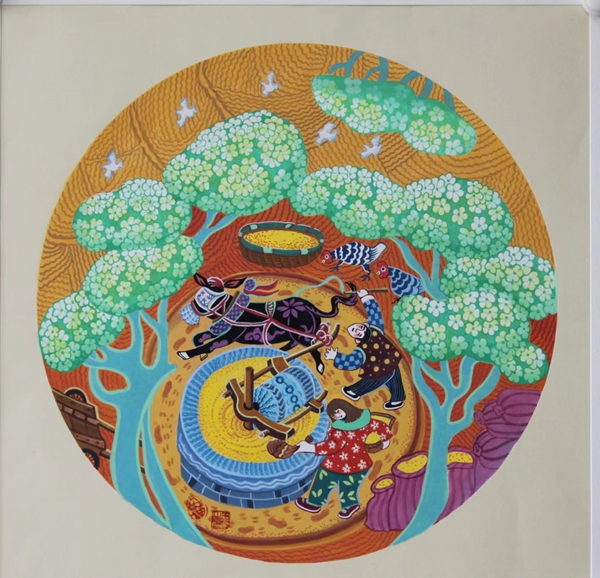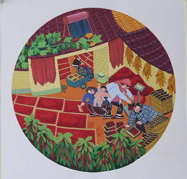Tian's works depict farmers' daily life.[Photo provided to China Daily]