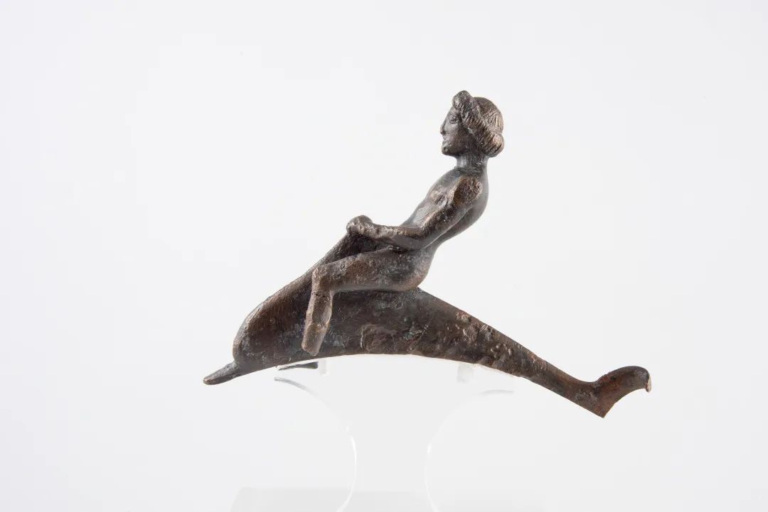 Bronze statue of a youth riding a dolphin, 475-450 BC, unearthed from Athens Acropolis, from the collection of the Athens Acropolis Museum [Photo/Official WeChat account of the Shanghai Museum]