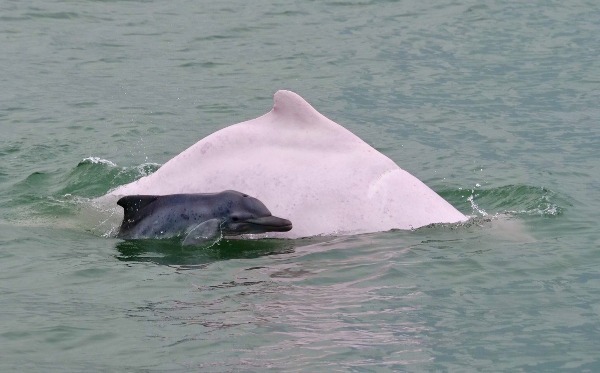 According to Wang, despite being called white dolphins, newborn calves are actually gray.