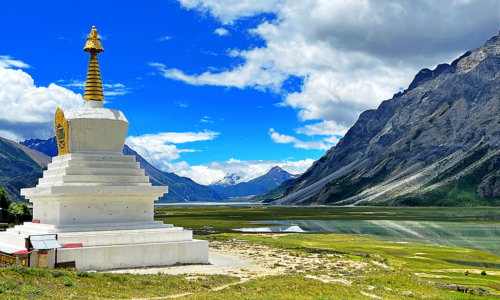Covering a total area of 22 square kilometers, the Ranwu Lake is the largest lake in eastern Tibet. In midsummer, the slow-moving waters complement the azure sky, puffy clouds, and snow-capped mountains. What a picturesque view!