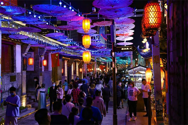 Yantai Zhifu Wonderland Historical and Cultural Block is located in downtown Yantai, and filled with a antique flavor. A variety of interactive activities such as folk art juggling, Languan opera, and Jiaodong drumming are staged every night, bringing tourists a variety of unique experiences. [Photo/WeChat account: sdswltwx]