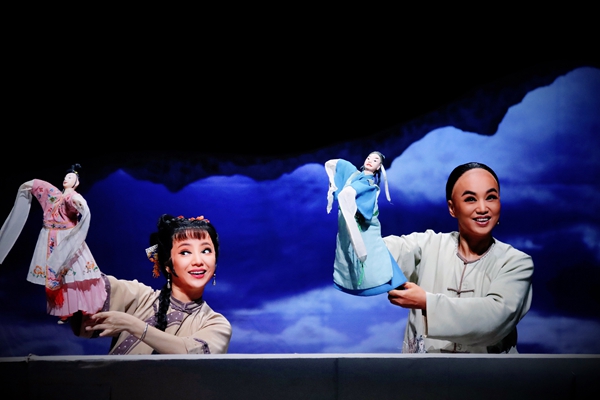 A performing arts troupe from the Xiamen Gezai Opera Research and Study Center stages the show Qiaopi at Tianqiao Performing Arts Center in Beijing on July 16.[Photo provided to China Daily]