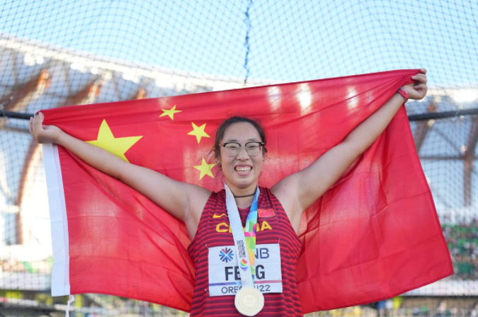 Feng managed a personal best 69.12 meters in her first attempt, which was unchallenged by other throwers afterward.
