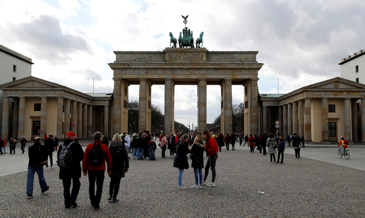 People in front of the Brandenburg Gate in Berlin on March 11, 2020. [Photo/Agencies]