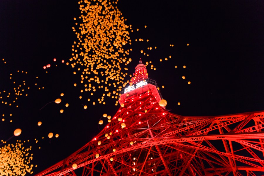 Tokyo Tower is lit up in red to celebrate Chinese Lunar New Year in Tokyo on Jan 31, 2022. [Photo/Xinhua]