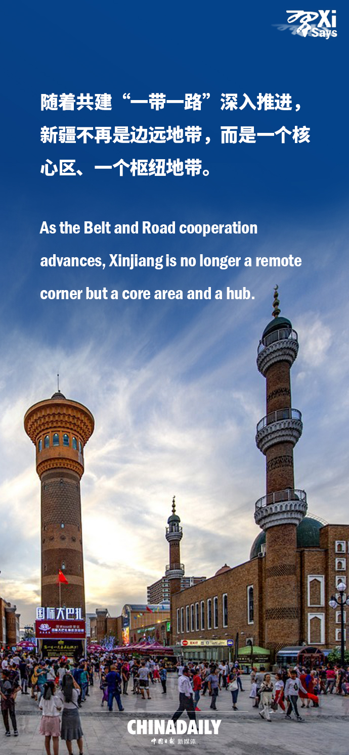President Xi Jinping recently inspected Northwest China's Xinjiang Uygur autonomous region and visited officials and the general public of different ethnic groups. Here are some highlights from his remarks during the visit.