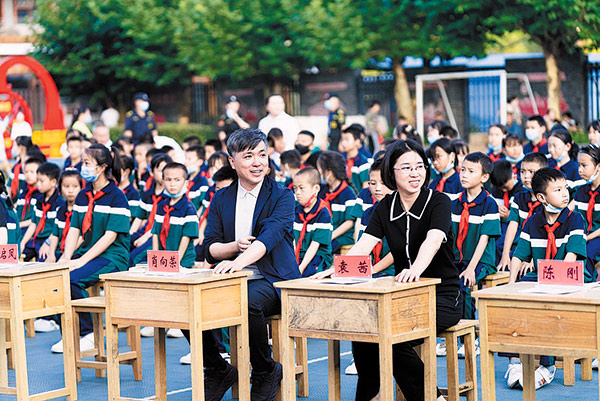 As night fell, the summer heat faded away. On the playground of Gouba Conference Red Army Elementary School in Zunyi, Southwest China's Guizhou province, nearly 200 children and teachers sat on their stools to watch the movie 1921, a 140-minute revolutionary epic that recounts the founding of the Communist Party of China.