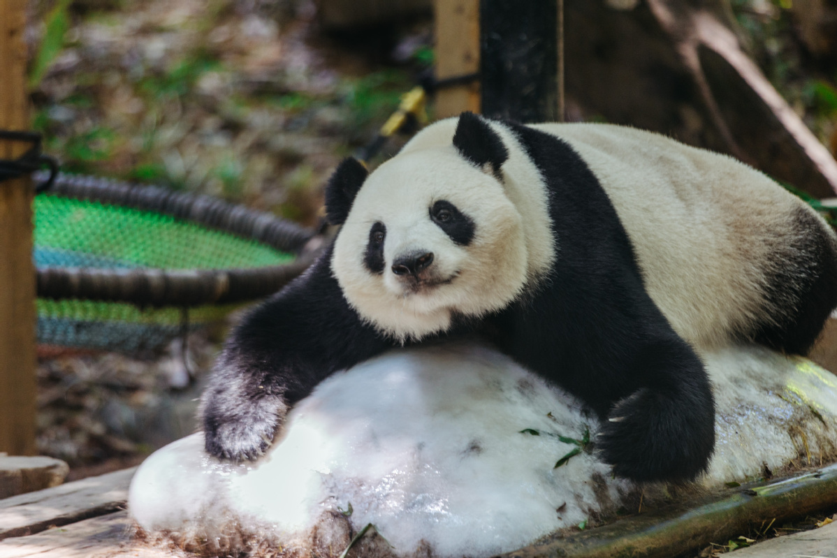Pandas hug blocks of ice, elephants play with ice blocks, koala sits on ice, hippos eat watermelon, and Brazilian Tapirs stay in water to cool down. Let's take a look at their cute actions.