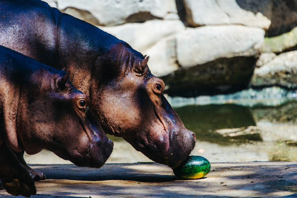 A hippo eats a watermelon to cool down in hot weather at Chimelong Safari Park in Guangzhou, Guangdong province, on July 22, 2022. [Photo by Deng Yongyi/For chinadaily.com.cn]