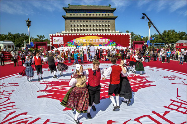 International visitors gather at the Central Axis. [Photo by Li Zhiguo/For China Daily]