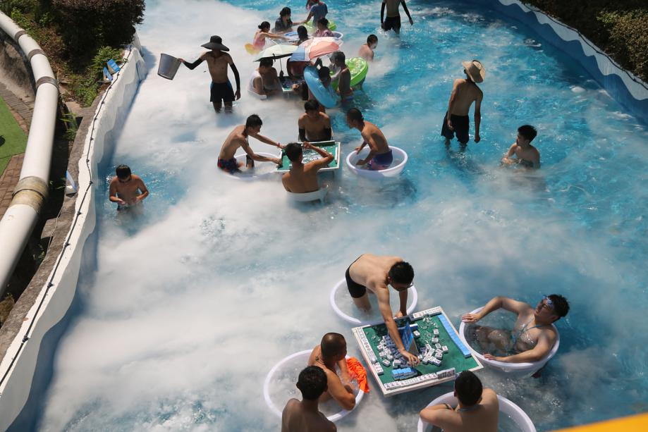 Hot? People play mahjong while sitting in ice