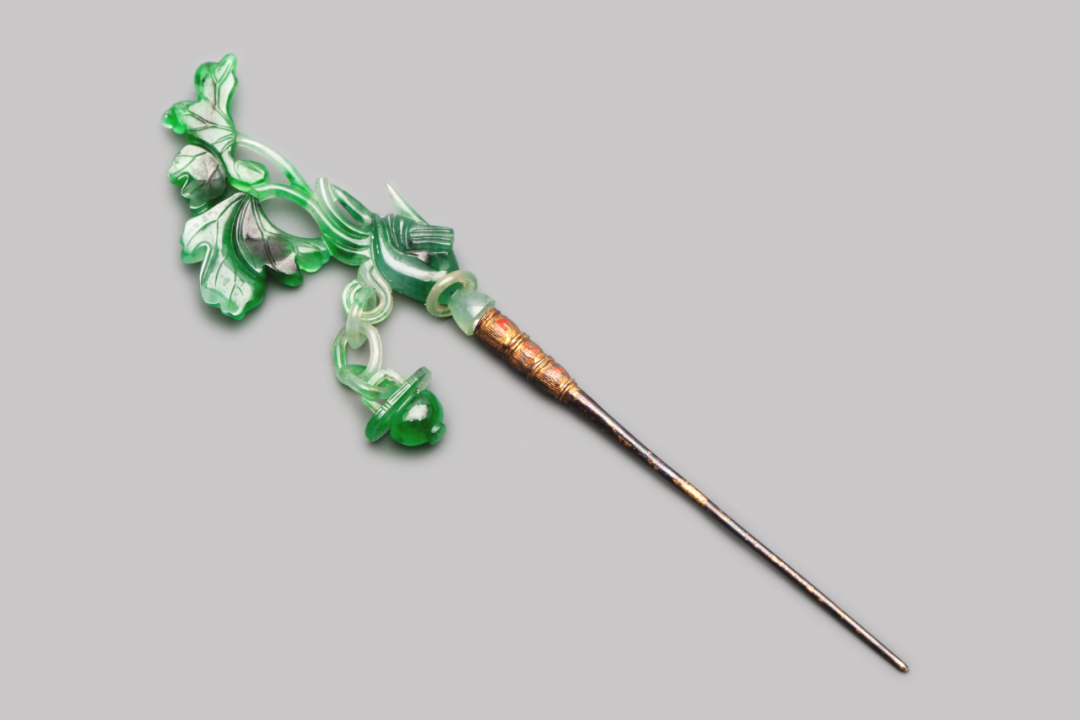 An emerald-carved hairpin [Photo/Official WeChat account of the Shenyang Palace Museum]