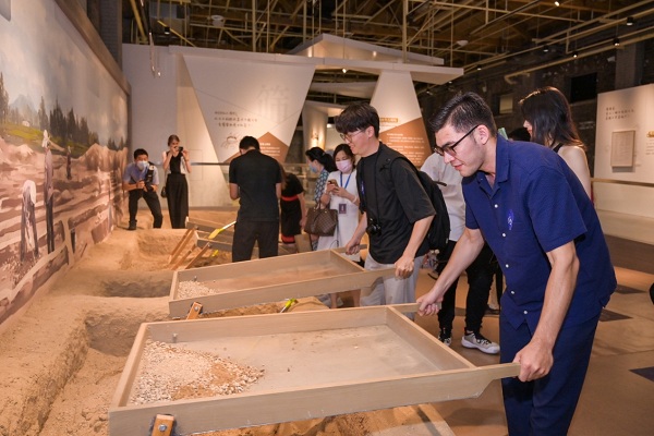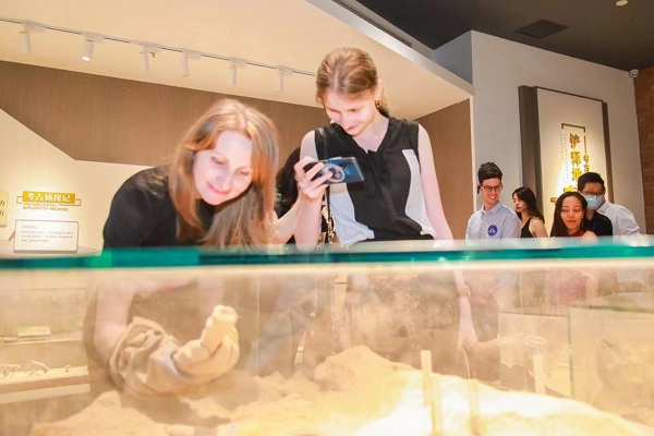 Visitors experience archaeological work at the Daming Palace Archaeological Exploration Center. [Photo provided to chinadaily.com.cn]