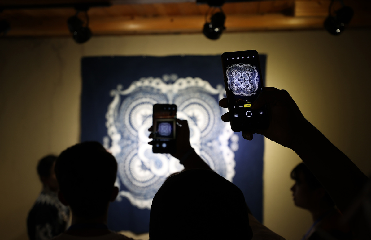Foreign students use mobile phones to record traditional Miao batik patterns at a museum in Danzhai county. [Photo by Huang Xiaohai/Provided to chinadaily.com.cn]