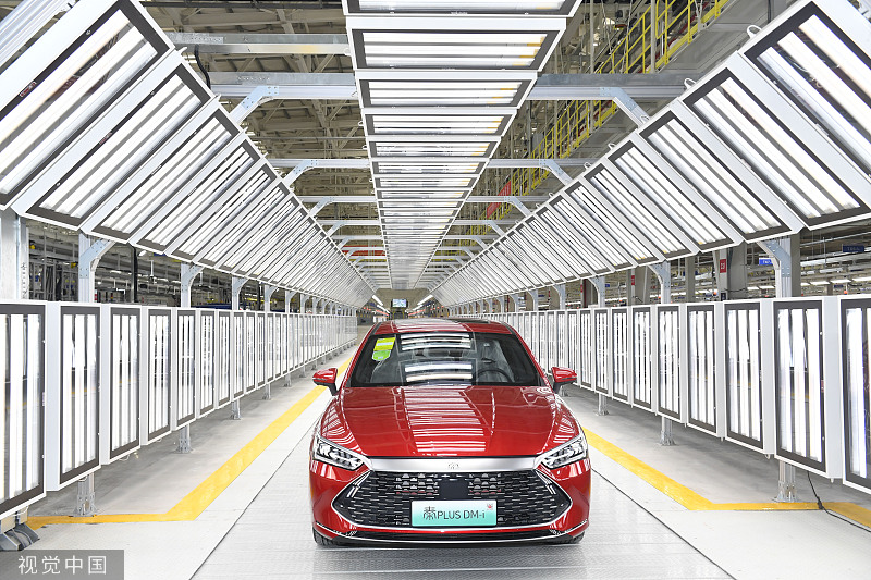 A BYD car rolls off the production line in Hefei, Anhui province, on June 30, 2022. [Photo/VCG]