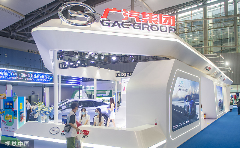 A visitor walks toward the GAC Group booth in Guangzhou, South China's Guangdong province, on June 24, 2022. [Photo/VCG]