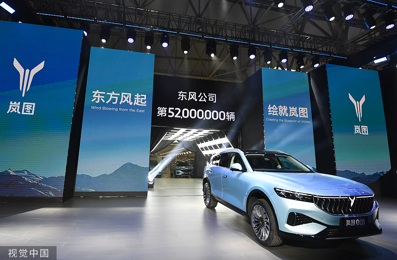 An automobile manufactured by Dongfeng Motor Corporation rolls off the production line in Wuhan, Central China's Hubei province, on June 30, 2021. [Photo/VCG]