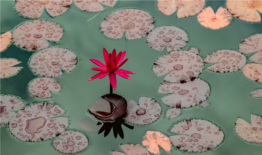 A water lily blooms at the China National Botanical Garden in Beijing, July 28, 2022. Water lilies have entered their blooming season, as the city is experiencing