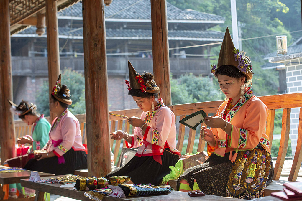 Women from Ma’an village in Southwest China’s Guizhou province are engaged in embroidery weaving. [Photo/IC]