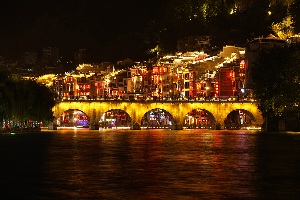 Guizhou’s Zhenyuan town lights up at night