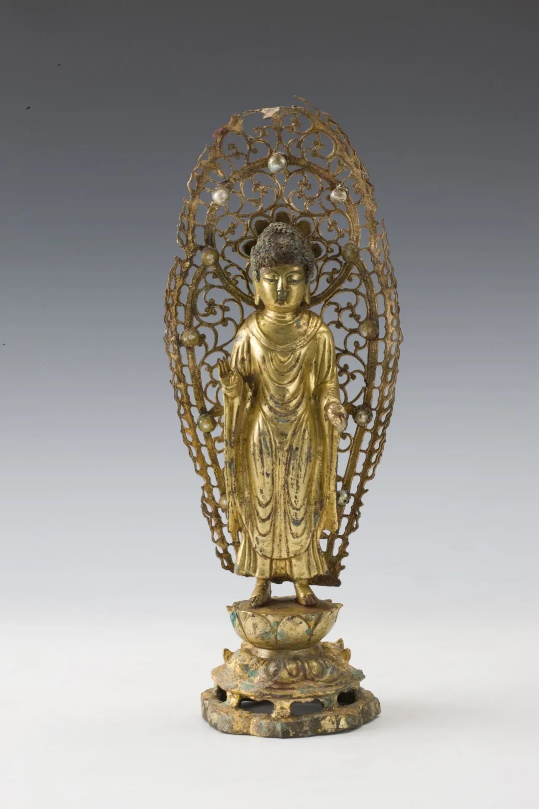Gilded bronze standing Buddha, 8th century, permanent collection of the Ningbo Museum [Photo/Official WeChat account of the Zhoushan Museum]