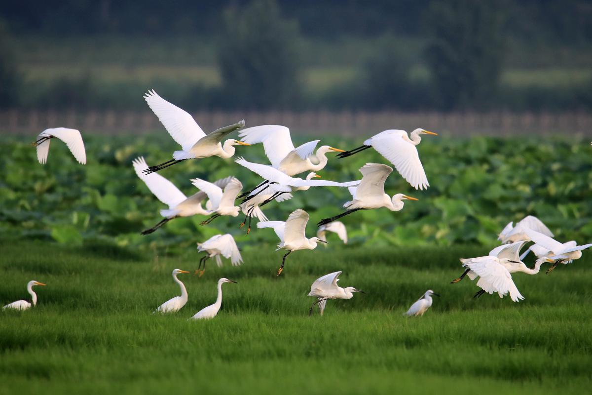 Egrets make splash in Shanxi wetlands